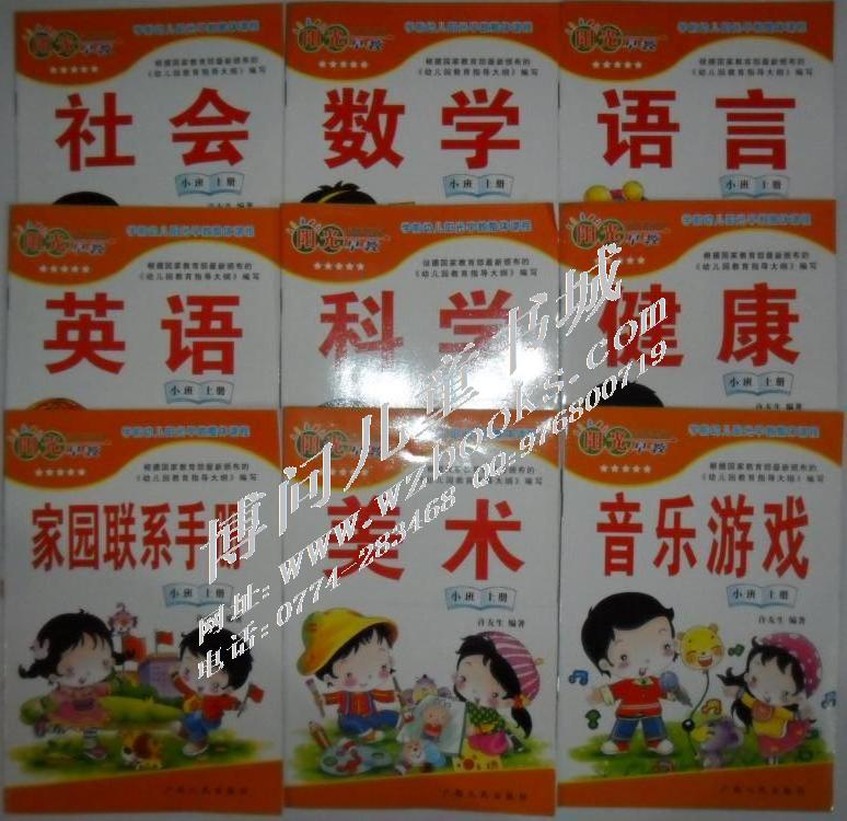 小班(每册套9本:英语、美术、数学、语言、音乐游戏、社会、健康、科学、家园联系手册)34.2元/册套;