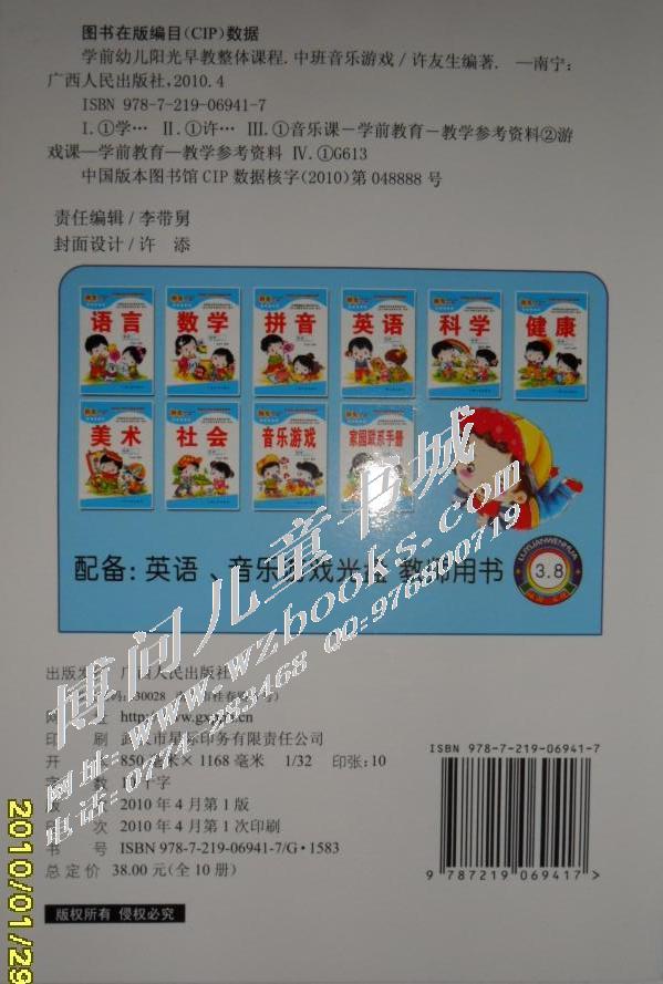 小班下册全套共10科:语言,数学,拼音,英语,科学,健康,美术,社会,音乐游戏,家园联系手册,每科本定价3.8元 配有英语,音乐游戏光盘及教师用书
