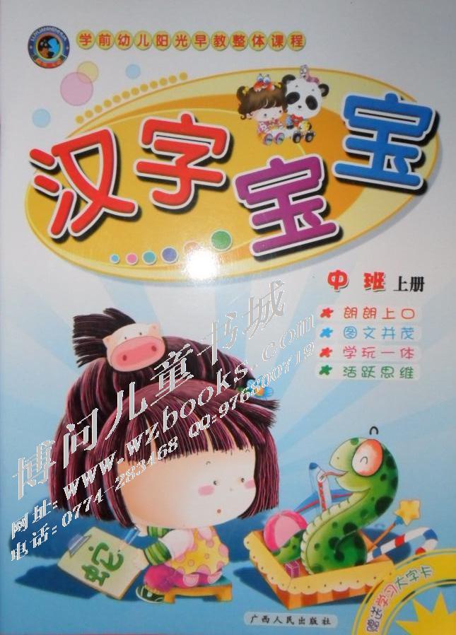 ISBN:9787219069400 书名:学前幼儿阳光早教整体课程-汉字宝宝 小班(分上下册)定价8元/册 ISBN:9787219069424 书名:学前幼儿阳光早教整体课程-汉字宝宝 大班(分上下册)定价8元/册 ISBN:9787219069431 书名:学前幼儿阳光早教整体课程-汉字宝宝 学前班(分上下册)定价8元/册