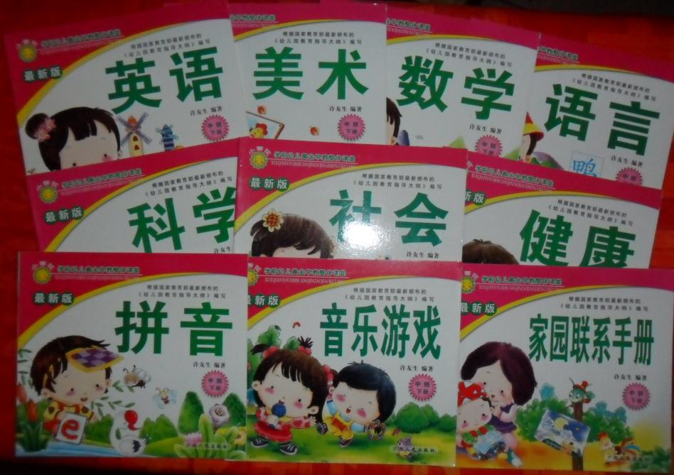 中班(每册套10本:英语、美术、数学、语言、音乐游戏、社会、健康、科学、拼音、家园联系手册)38元/册套