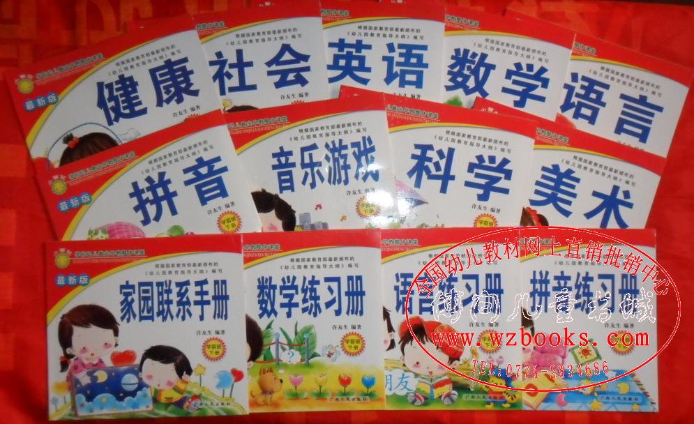 学前班(每册套13本:英语、美术、数学、语言、音乐游戏、社会、健康、科学、拼音、数学练习册、语言练习册、拼音练习册、家园联系手册)49.4元/册套