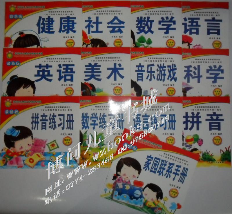 学前班(每册套13本:英语、美术、数学、语言、音乐游戏、社会、健康、科学、拼音、数学练习册、语言练习册、拼音练习册、家园联系手册)49.4元/册套;