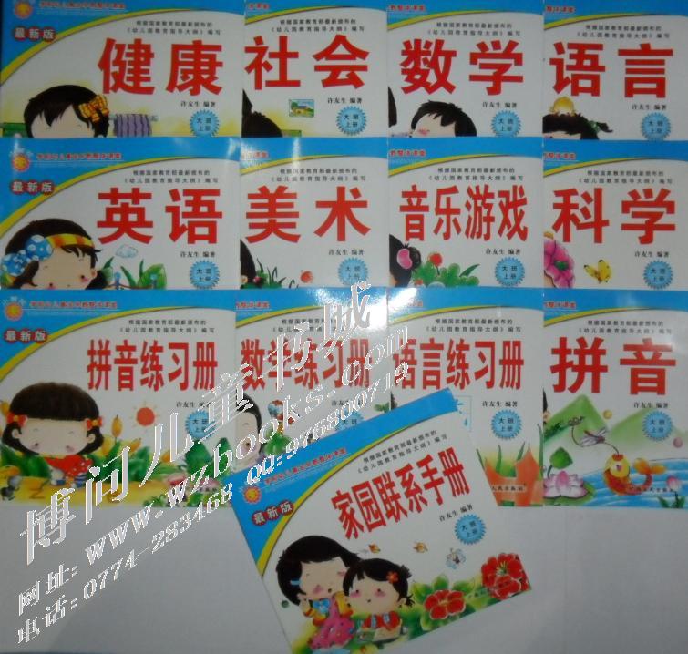 大班(每册套13本:英语、美术、数学、语言、音乐游戏、社会、健康、科学、拼音、数学练习册、语言练习册、拼音练习册、家园联系手册)49.4元/册套;