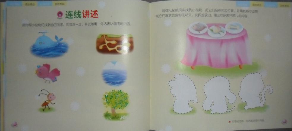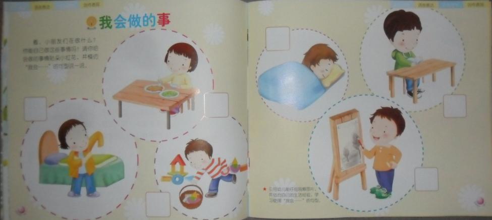 托班分四科,大中小班及学前班分六科:语言表达、数学操作、科学探索、社会与健康、音乐欣赏、美术创作
