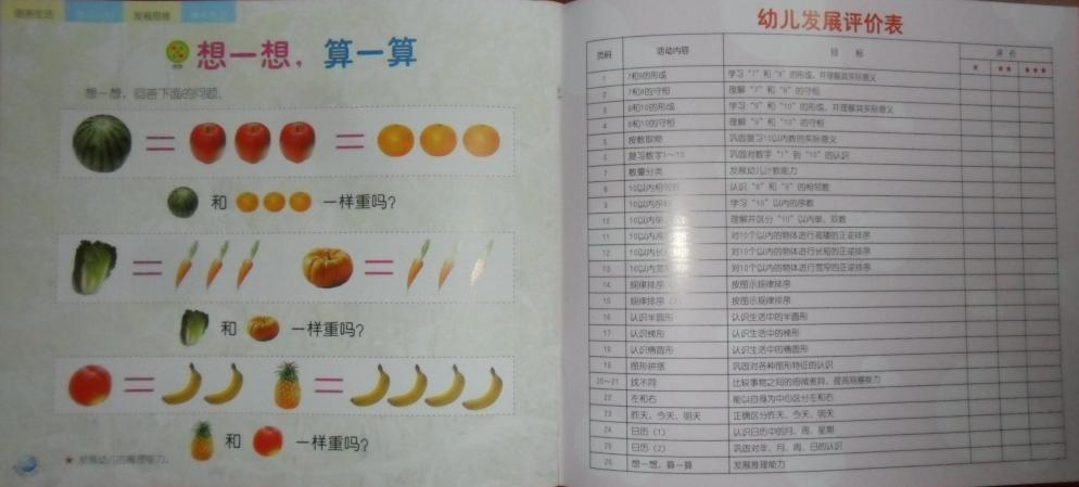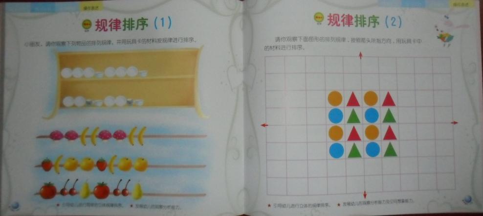 托班分四科,大中小班及学前班分六科:语言表达、数学操作、科学探索、社会与健康、音乐欣赏、美术创作