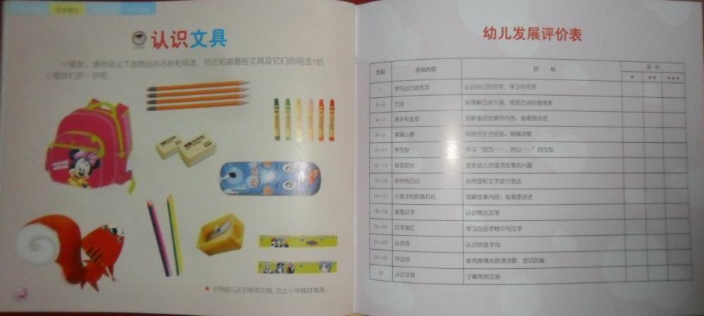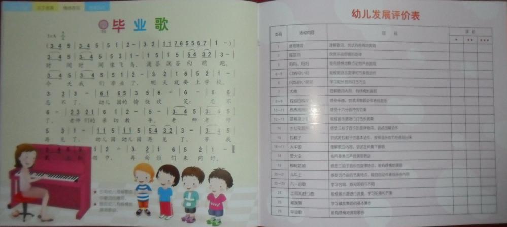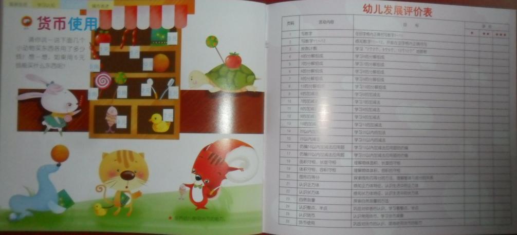 托班分四科,大中小班及学前班分六科:语言表达、数学操作、科学探索、社会与健康、音乐欣赏、美术创作