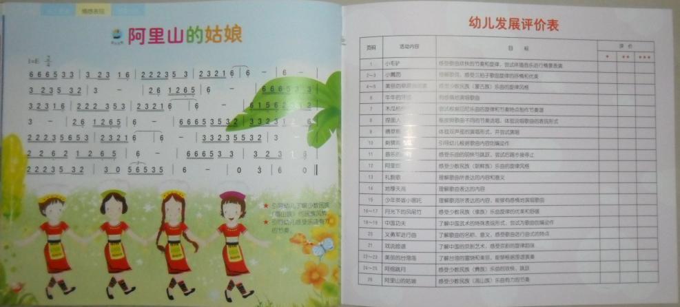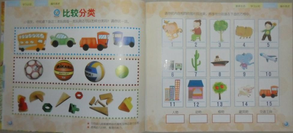 托班分四科,大中小班及学前班分六科:语言表达、数学操作、科学探索、社会与健康、音乐欣赏、美术创作