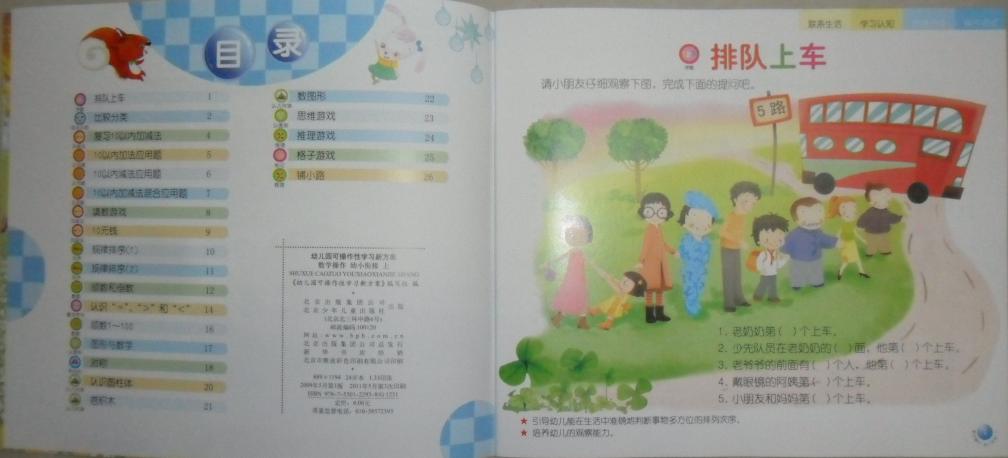 北京出版集团北京少年儿童出版社幼儿园可操作性学习新方案标准版学前班上册