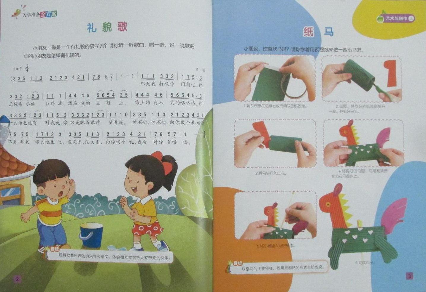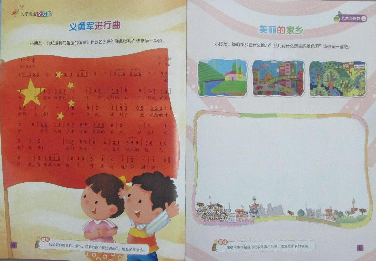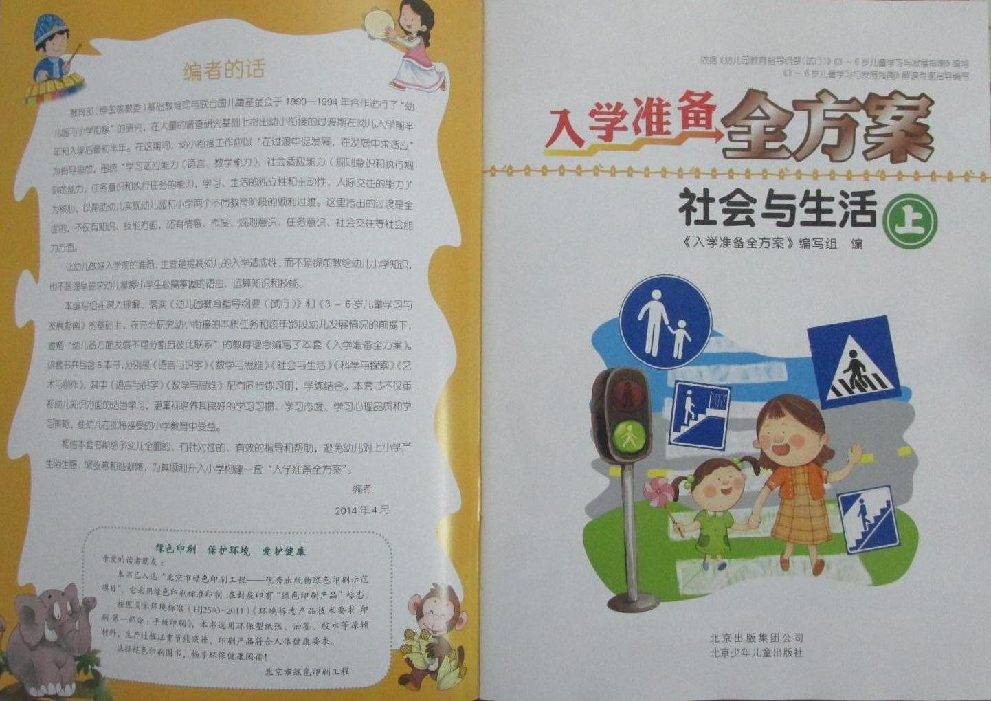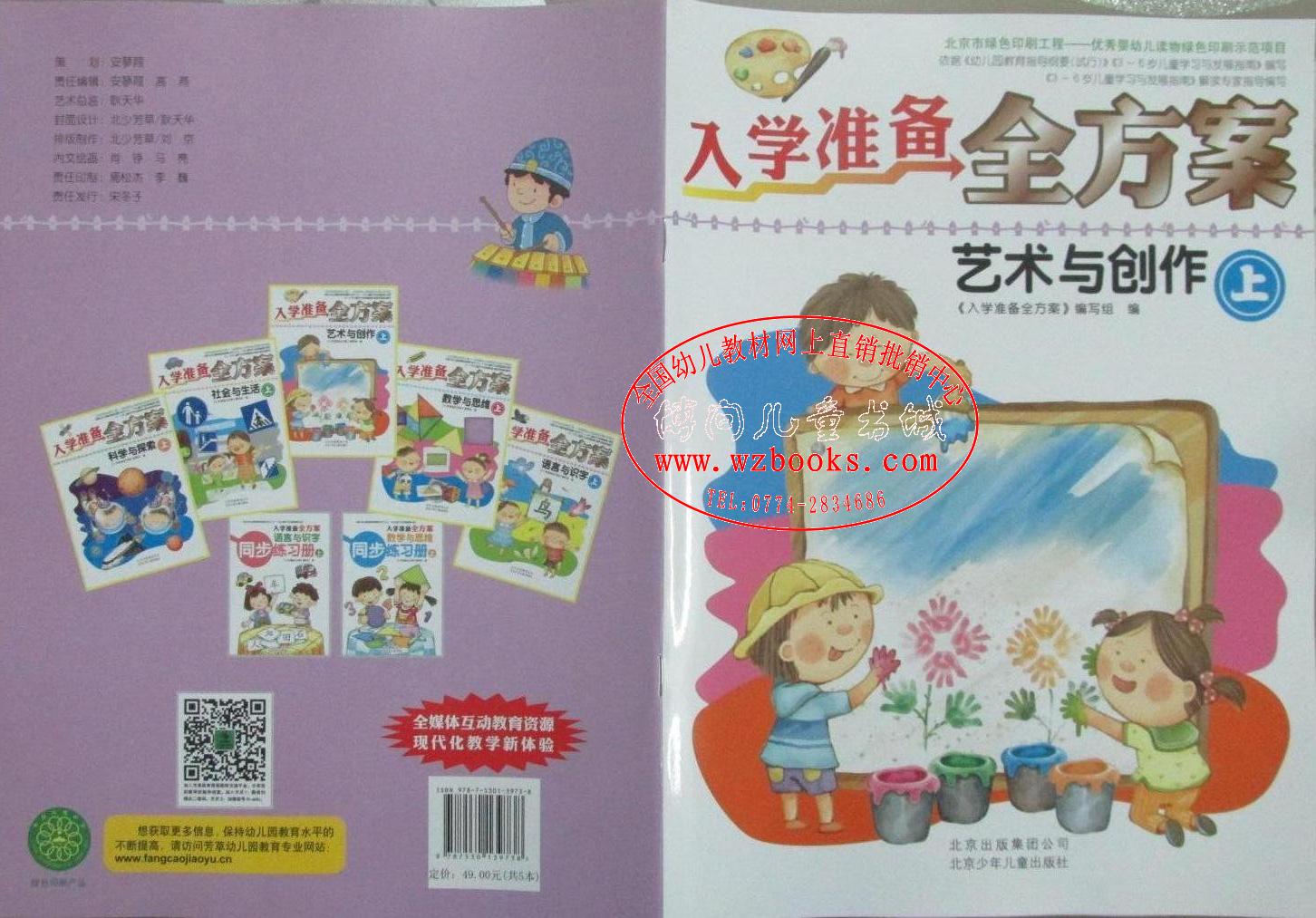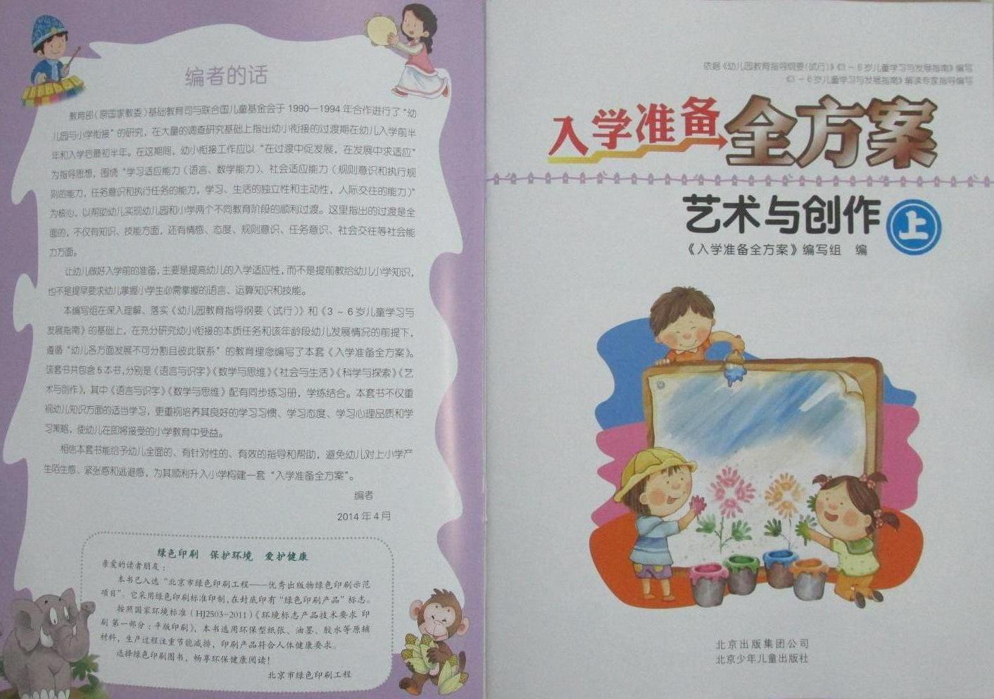 《入学准备全方案》教材共5本(语言与识字、数学与思维、社会与生活、科学与探索、艺术与创作)定价49元(配备多媒体课件)+同步练习册2本(语言与识字、数学与思维)定价16元学 = 前班上册 总定价65元