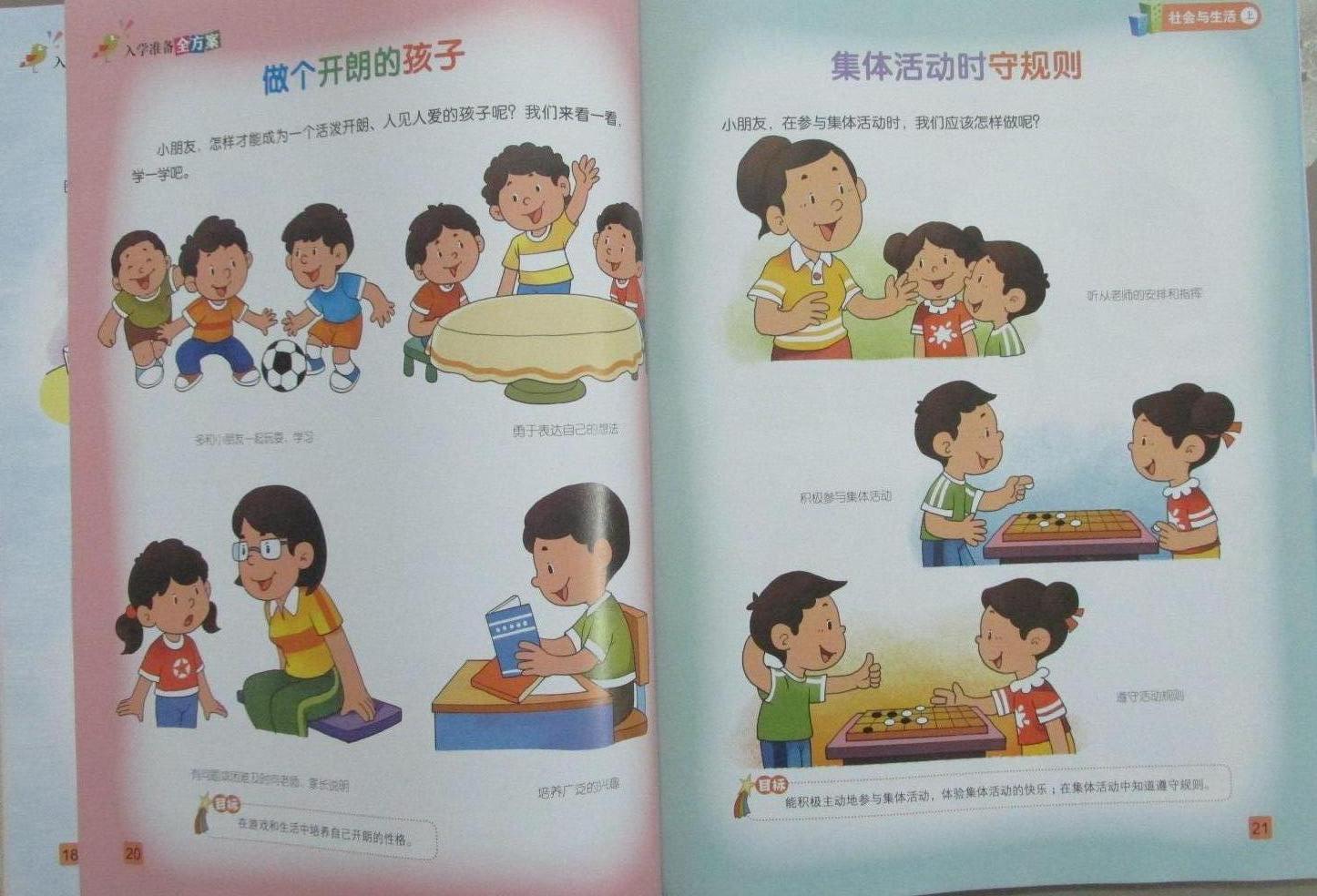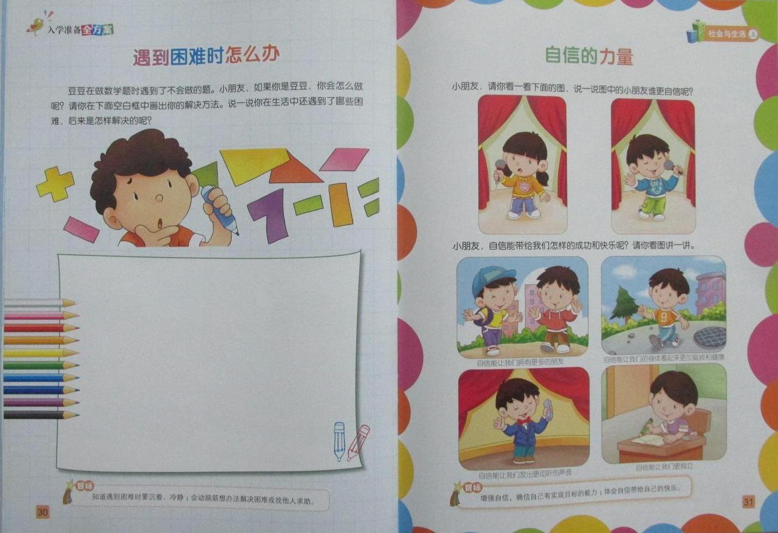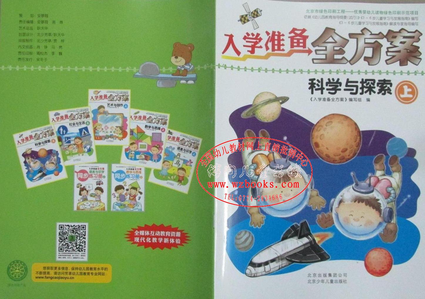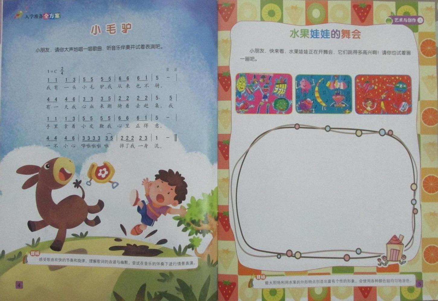 《入学准备全方案》教材共5本(语言与识字、数学与思维、社会与生活、科学与探索、艺术与创作)定价49元(配备多媒体课件)+同步练习册2本(语言与识字、数学与思维)定价16元学 = 前班上册 总定价65元