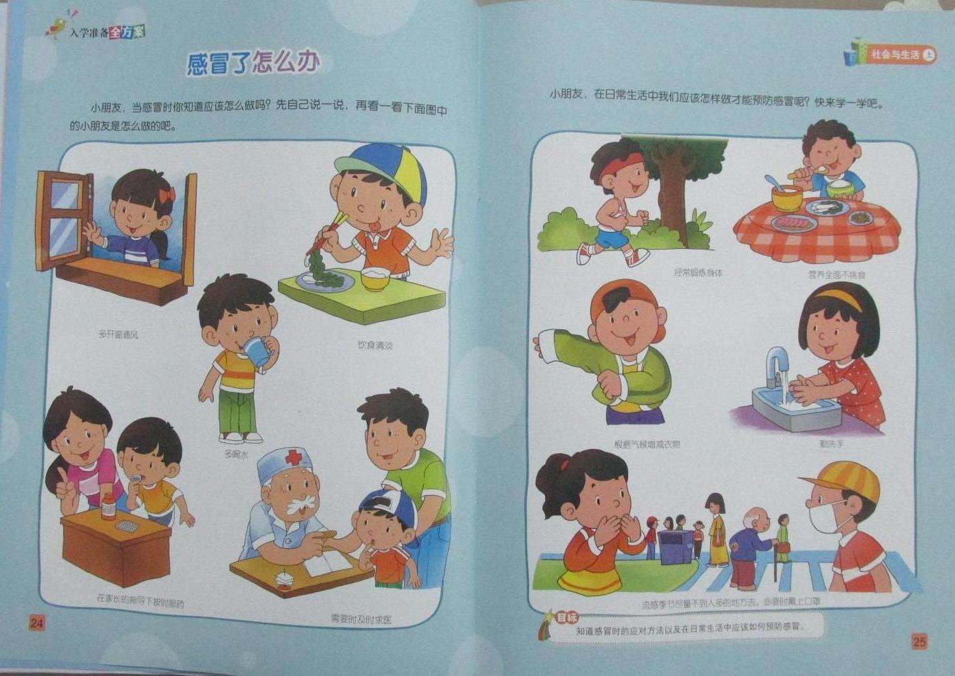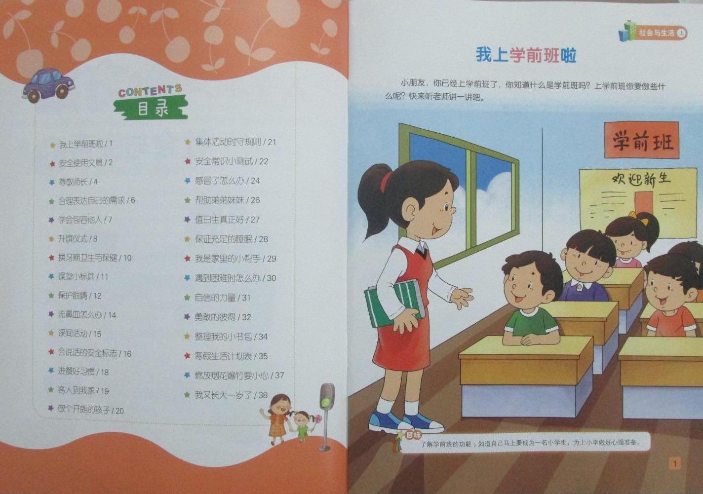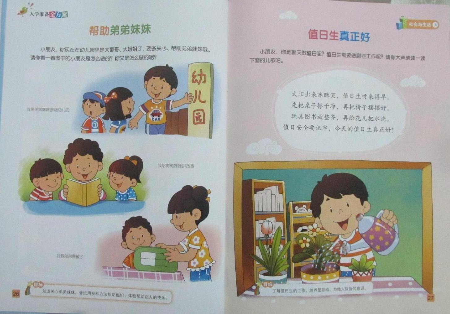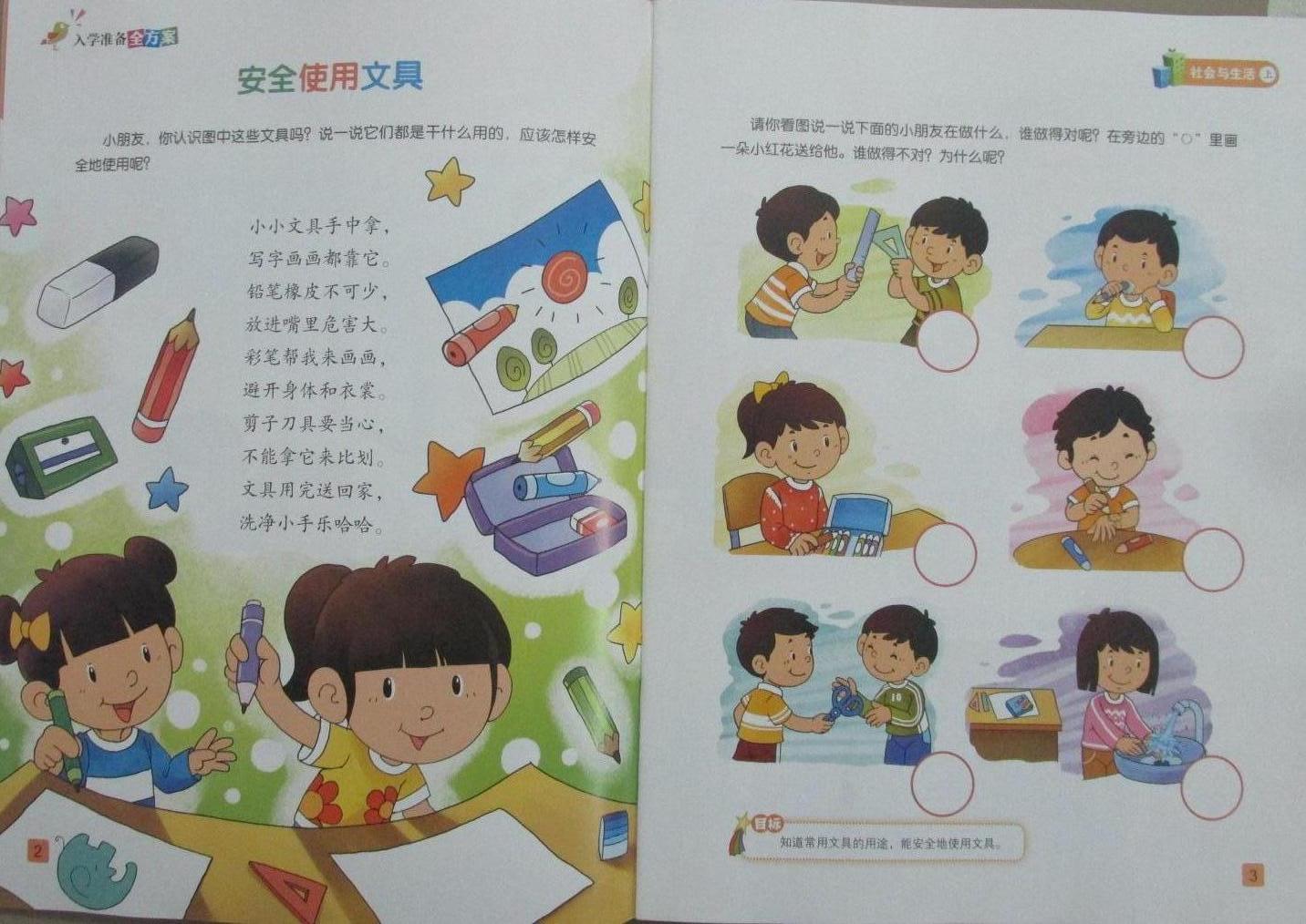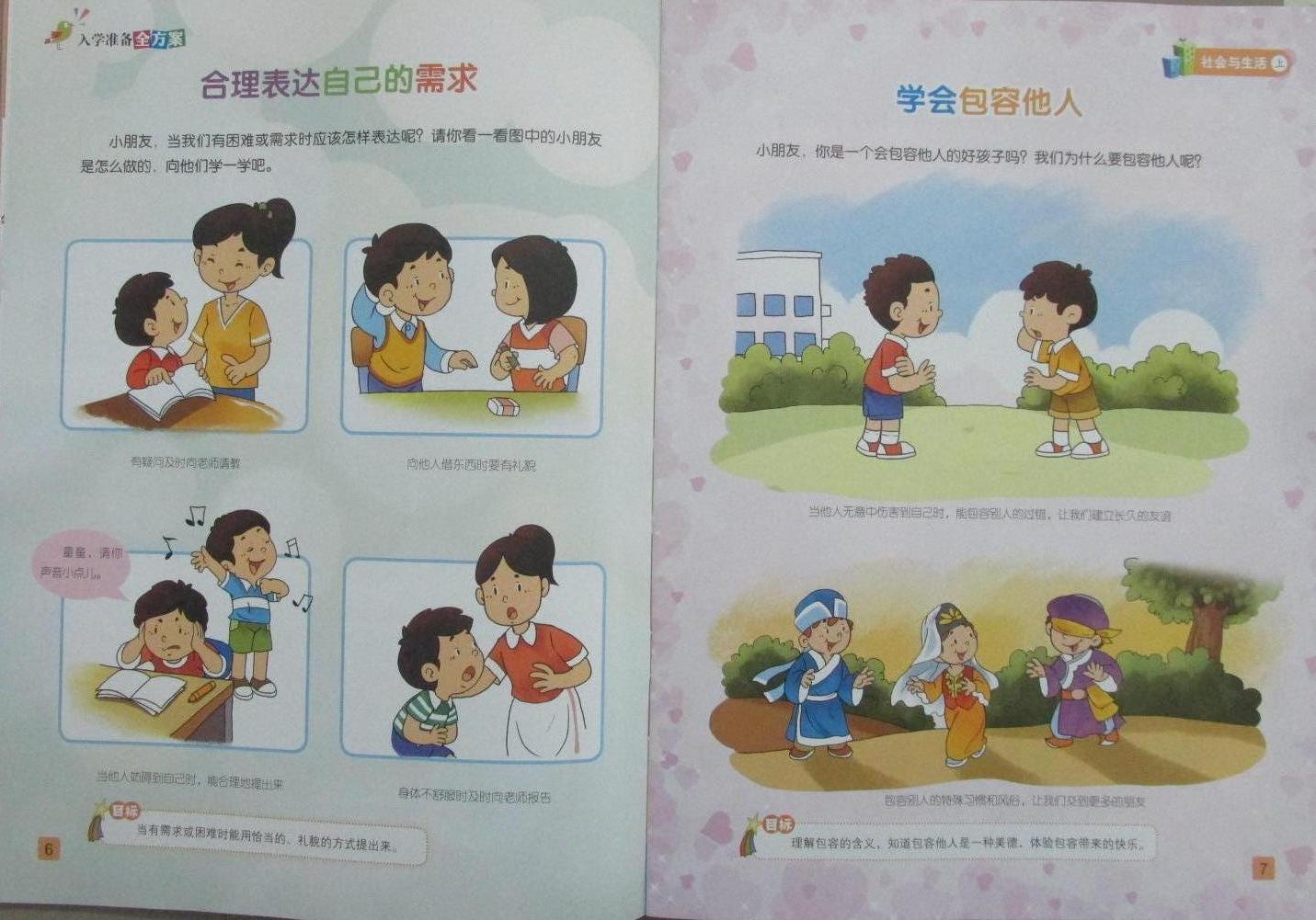 《入学准备全方案》教材共5本(语言与识字、数学与思维、社会与生活、科学与探索、艺术与创作)定价49元(配备多媒体课件)+同步练习册2本(语言与识字、数学与思维)定价16元学 = 前班上册 总定价65元