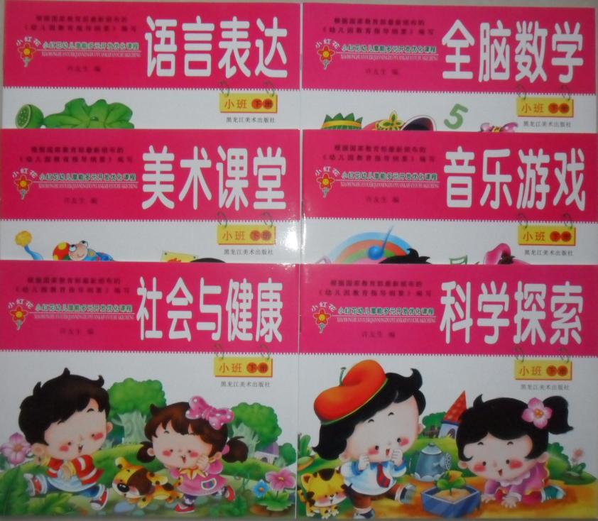 小红花幼儿潜能多元开发优化课程,分六科:语言表达、全脑数学、科学探索、社会与健康、音乐游戏、美术课堂