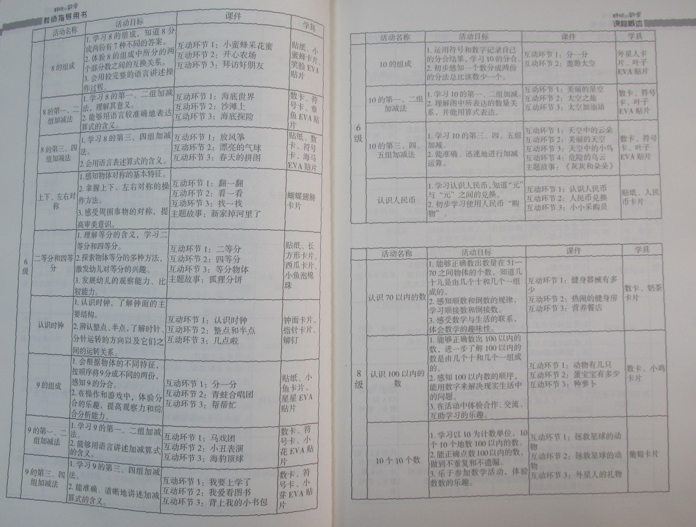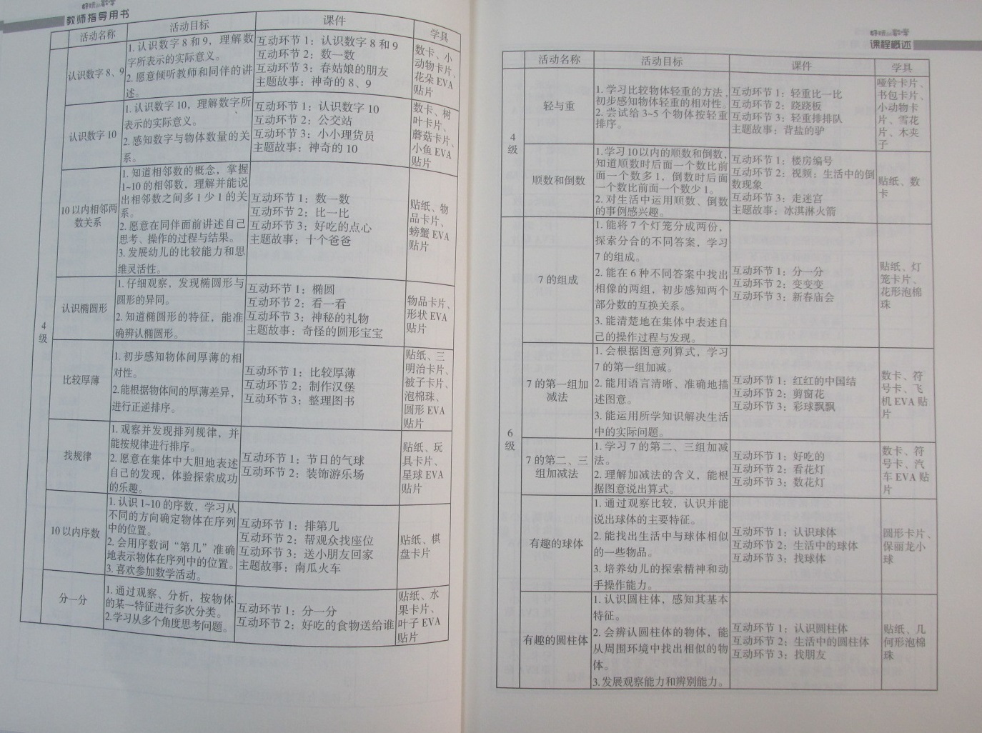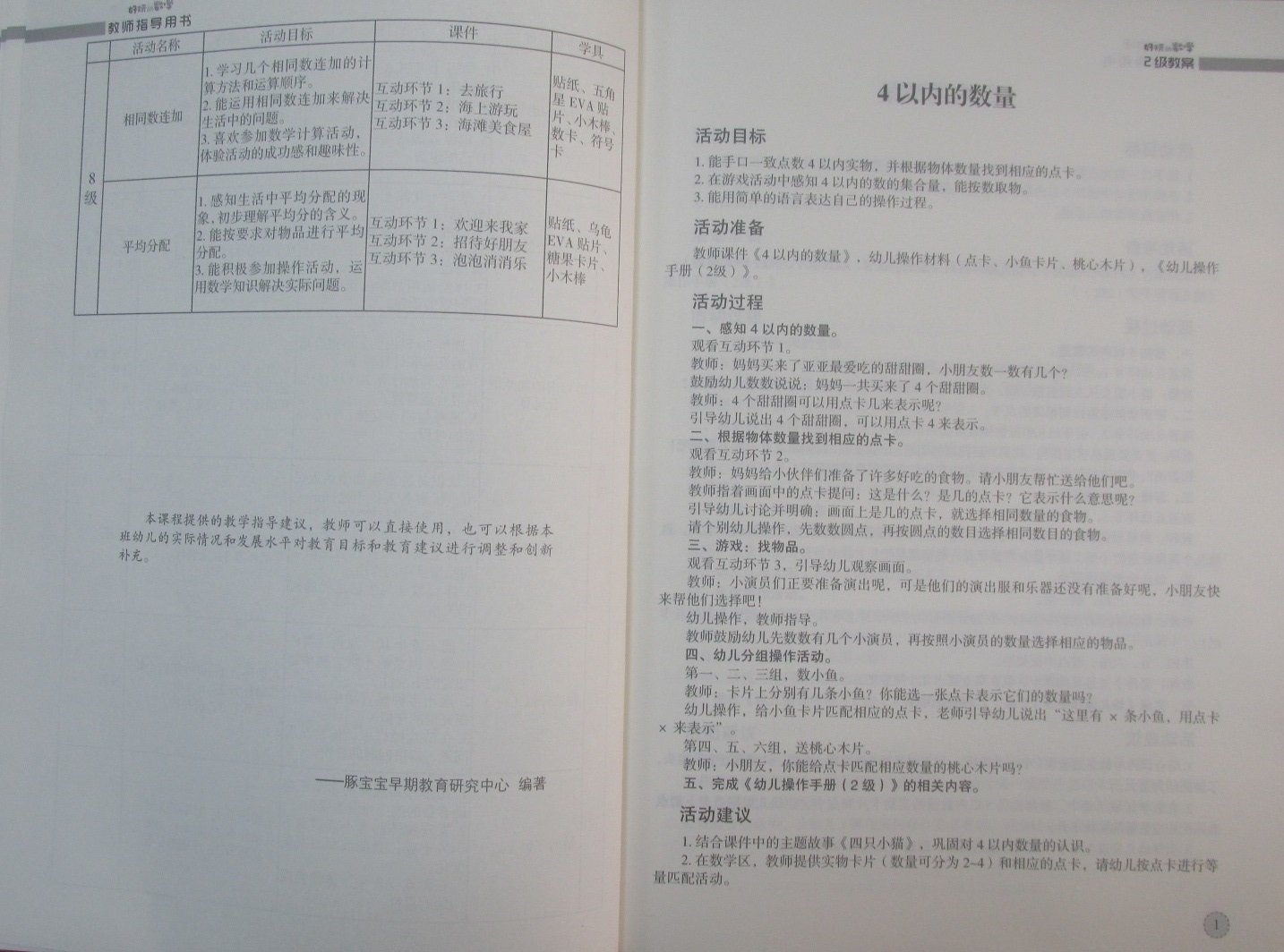 豚宝宝好玩的数学全套共分8级(12小班、34中班、56大班、78学前班),分上下册(1357上册2468下册)内容包含幼儿用书、幼儿学具材料、教师教学指导用书