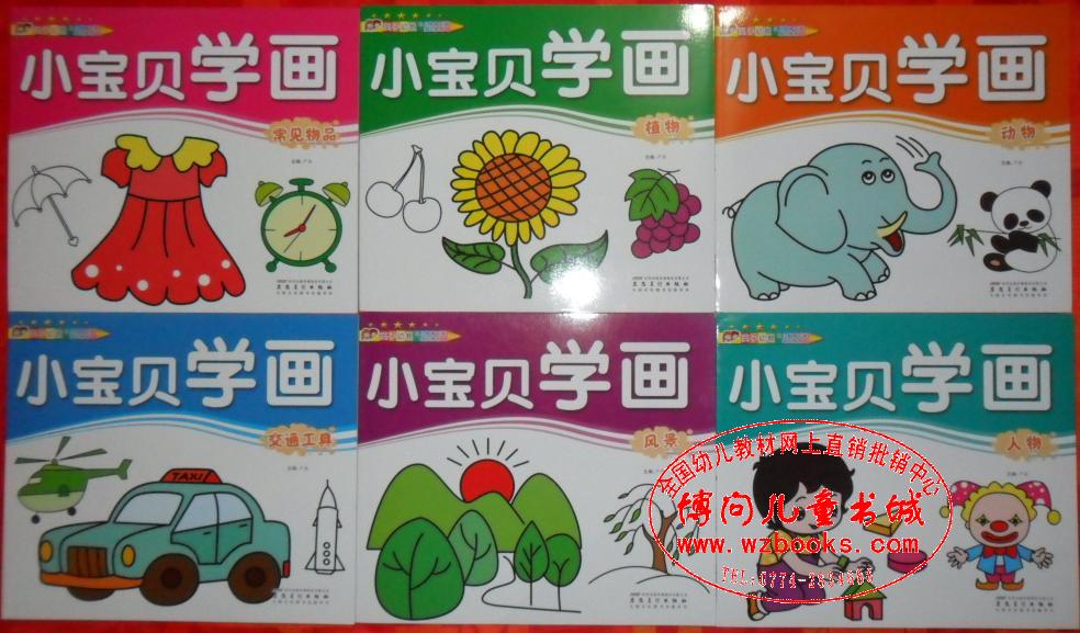 英子幼教小宝贝学画(共六本:常见物品,植物,动物,交通工具,风景,人物)(24开45页附白色托纸)