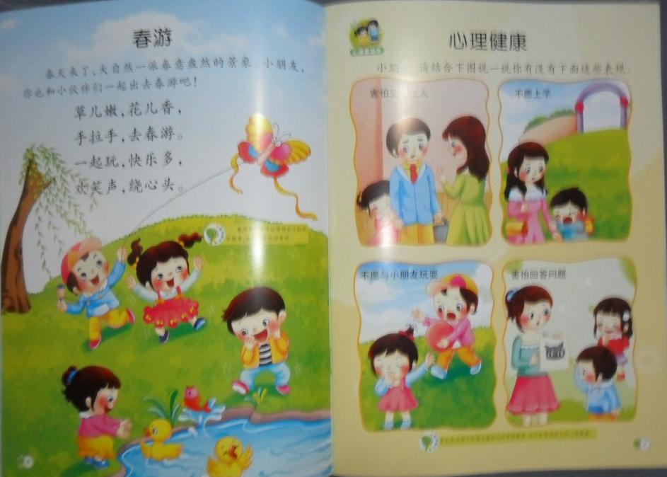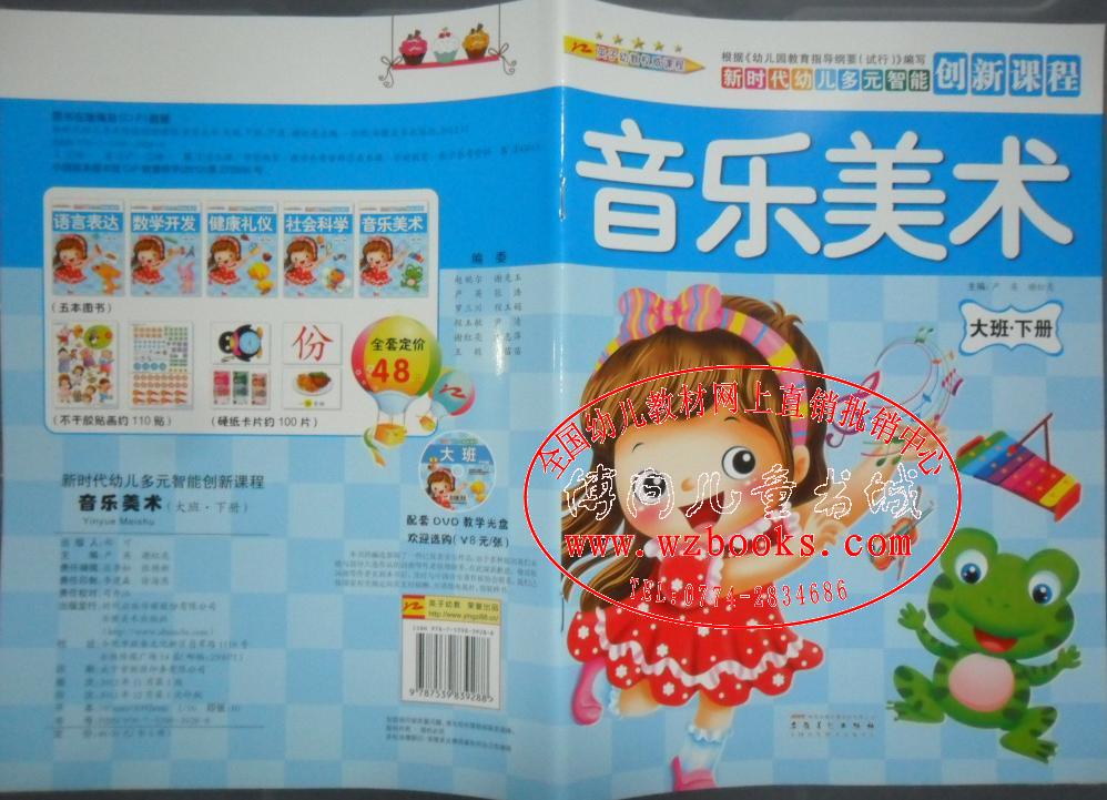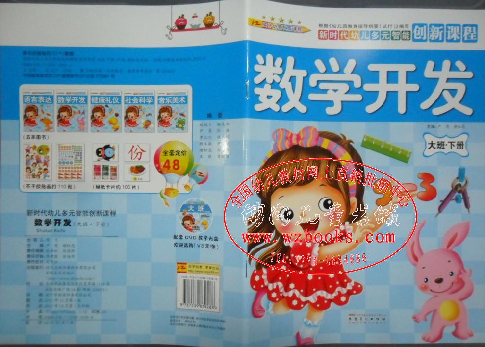 英子幼教新时代幼儿多元智能创新课程幼儿园教材课本 主编:严英,谢红亮 安徽美术出版社 情景中想象、游戏中学习,本套教材显著特点:内容新颖、趣味性、互动性、操作性,塑封16开大包装,全书特亮铜版纸印刷。 大中小班分上下册,每册套分别有5本书:语言表达、数学开发、健康礼仪、社会科学、音乐美术(附送教具:不干胶帖画及硬纸卡片)