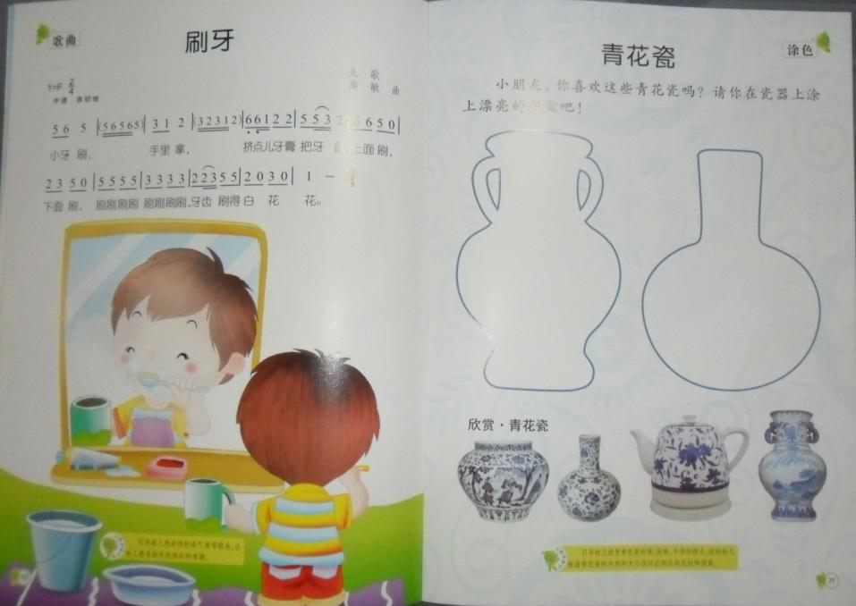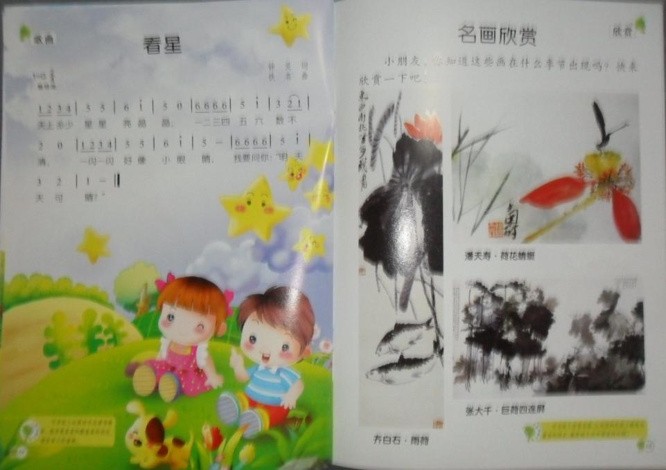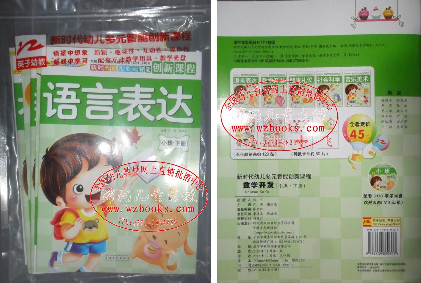 分5本书:语言表达、数学开发、健康礼仪、社会科学、音乐美术