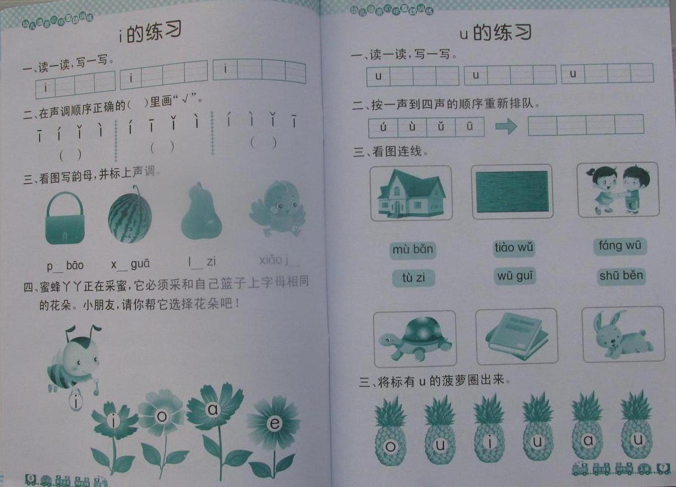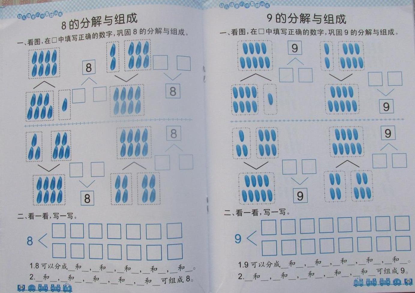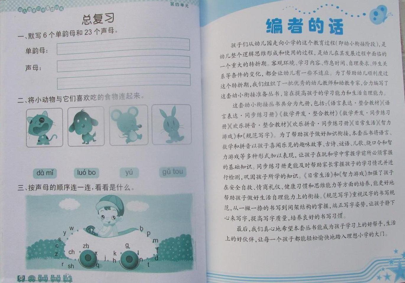每册套9本:语言表达综合教材、数学开发综合教材、欢乐拼音综合教材、日常生活、智力游戏、规范写字、语言表达同步练习册、数学开发同步练习册、欢乐拼音同步练习册。每本定价9.9元,每册套总定价89.1元