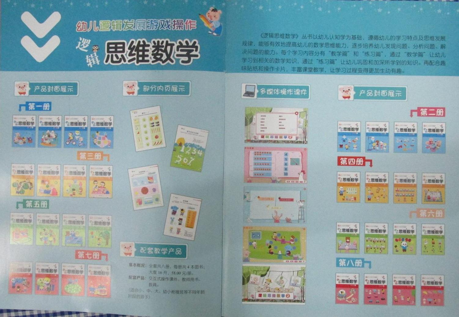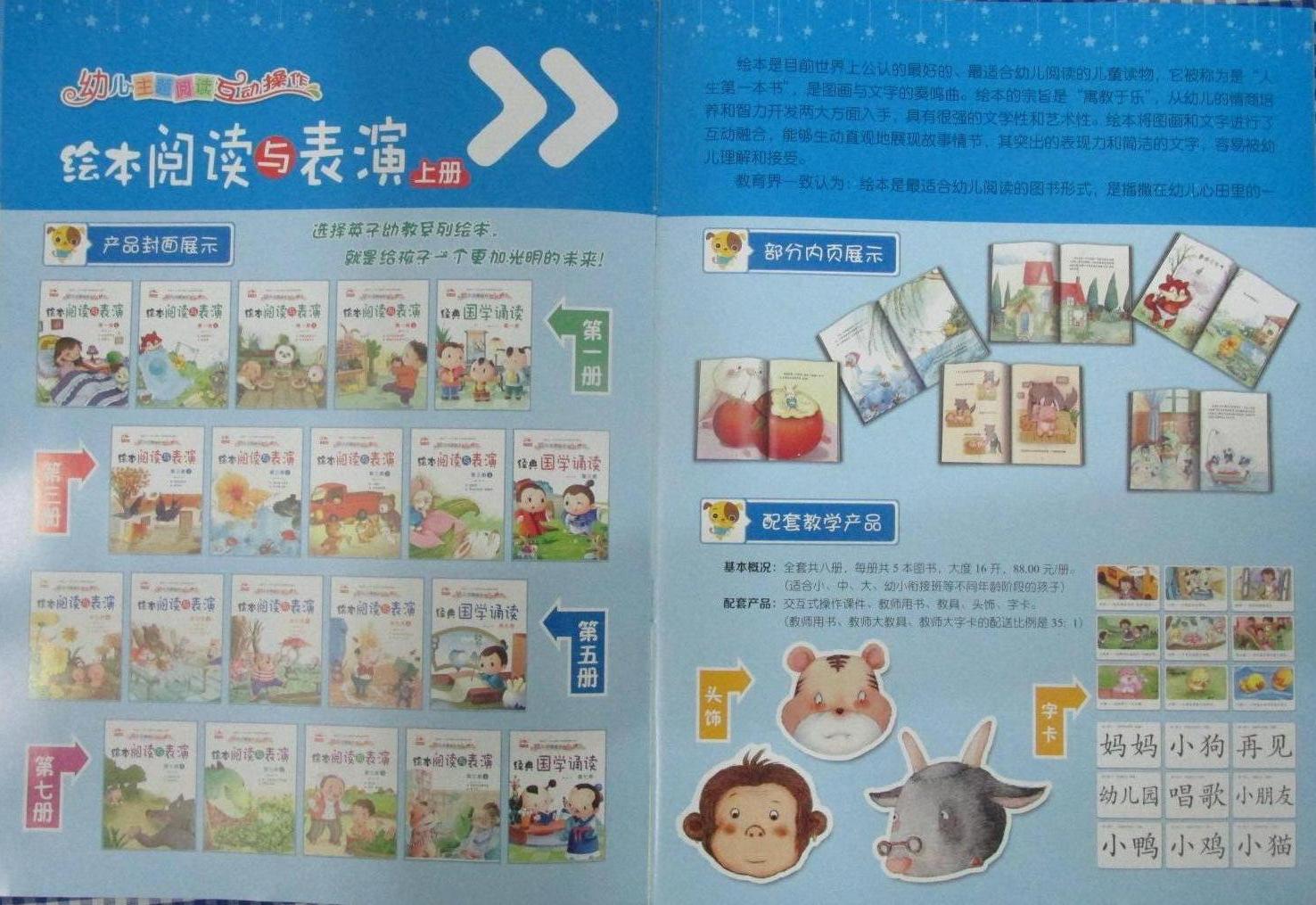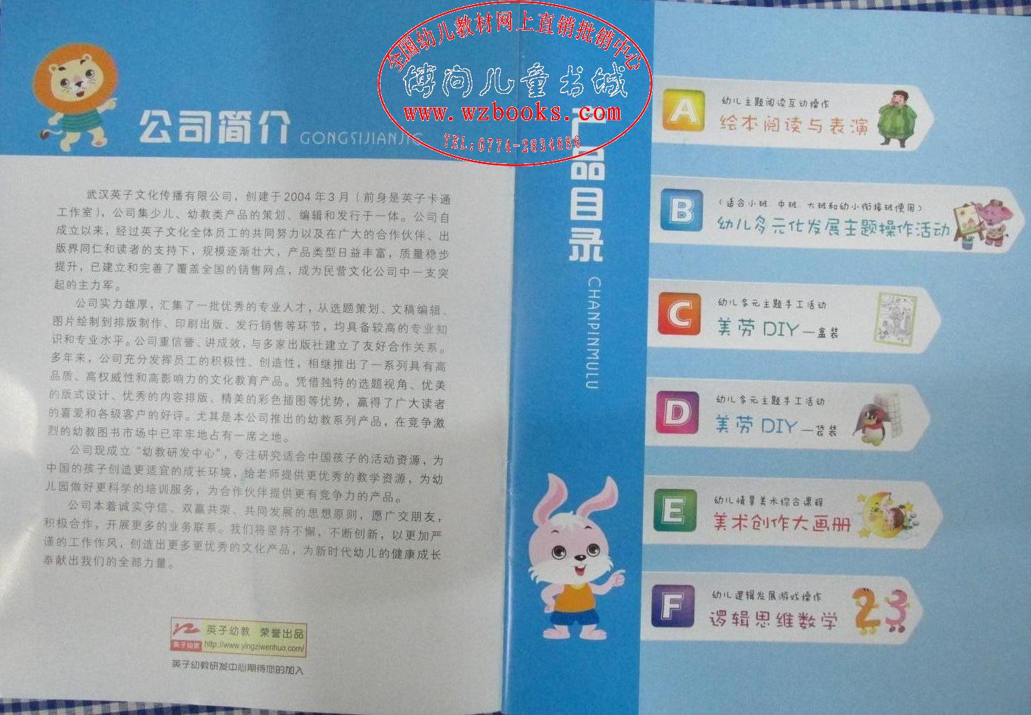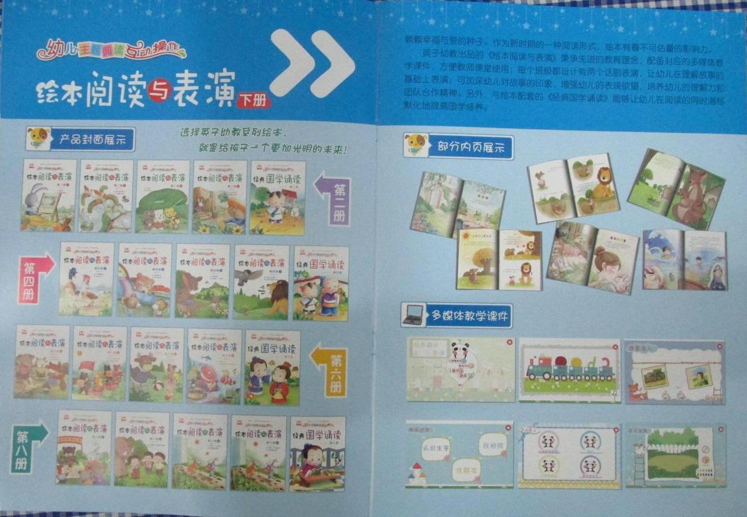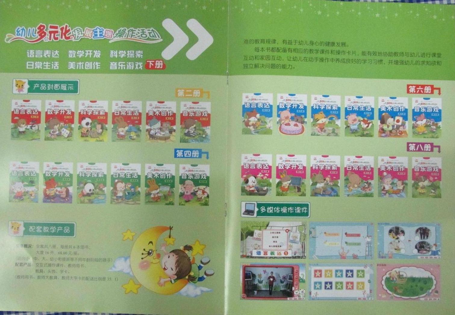 英子幼教*幼儿多元化发展主题操作活动五大领域教材(语言表达、数学开发、音乐游戏、美术创作、日常生活、科学探索)分上下册,分大中小班及学前班,每套定价68元. 本地实体店支持购教材送多媒体交互式教学一体机设备、多媒体交互式教学入园培训