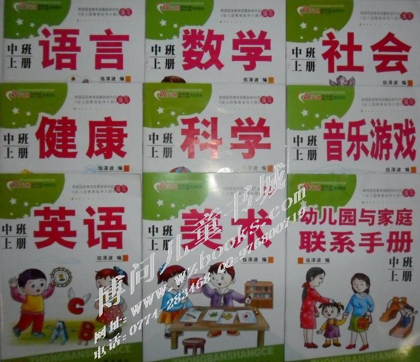 大中小班定价一样,(每册套9本:英语、美术、数学、语言、音乐游戏、社会、健康、科学、幼儿园与家庭联系手册)