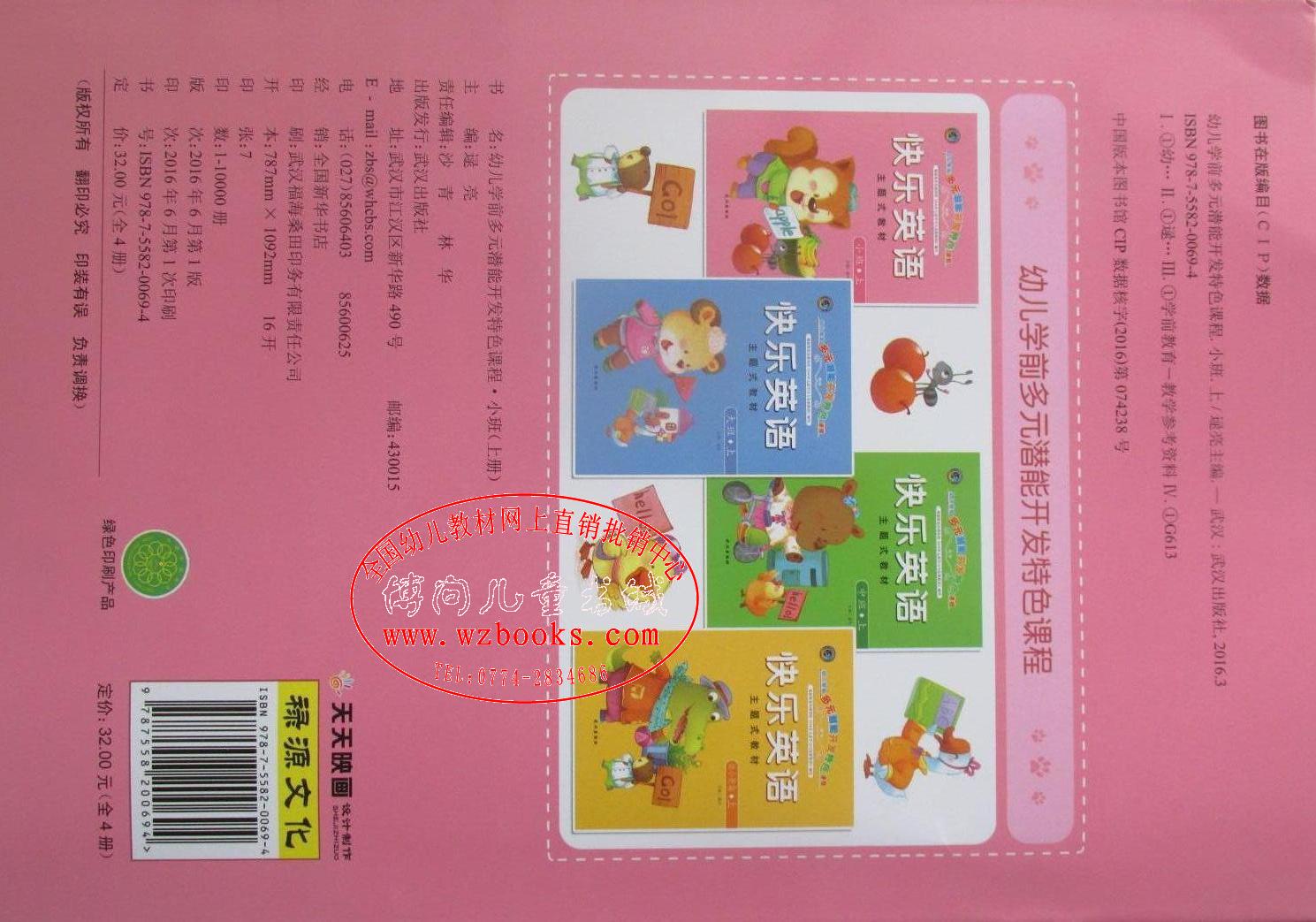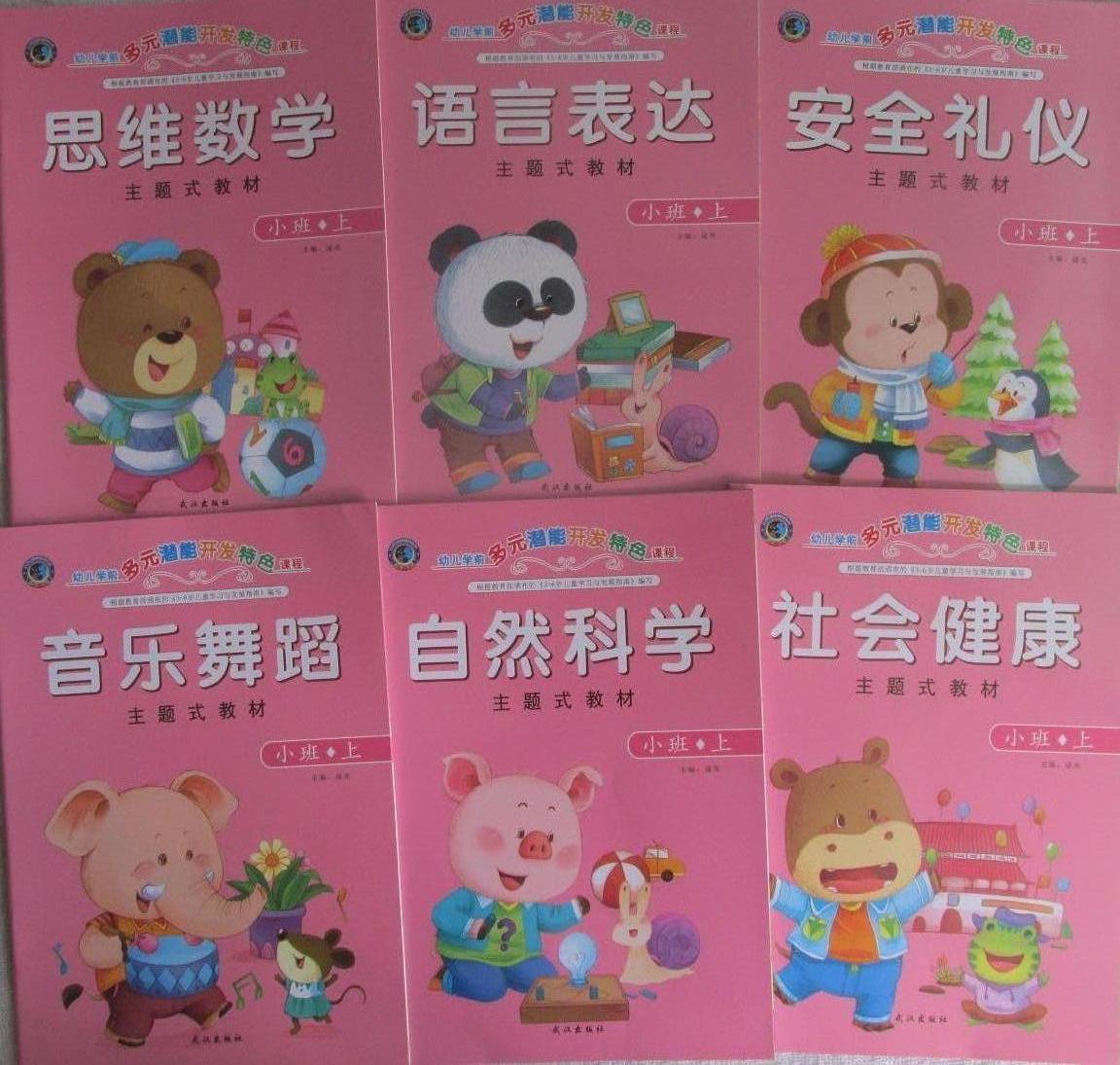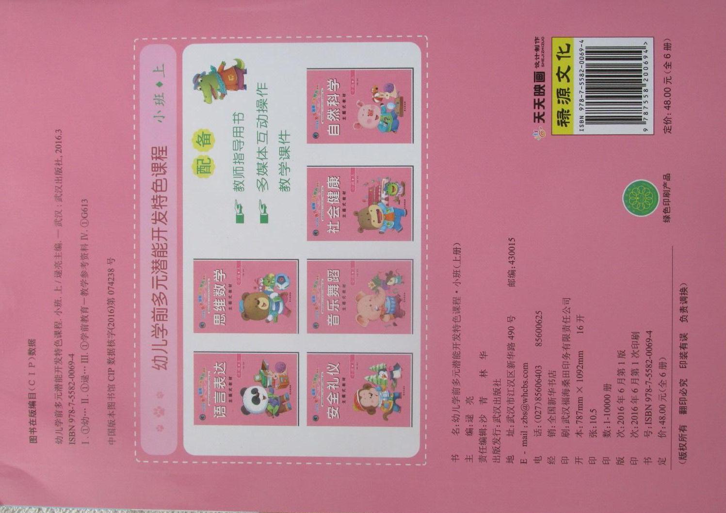 武汉出版社16开钢板纸印刷,配备多媒体互动操作教学课件,分大中小班学前班,每本定价8元(小班中班7本,大班学前班9本,另有2本拼音)