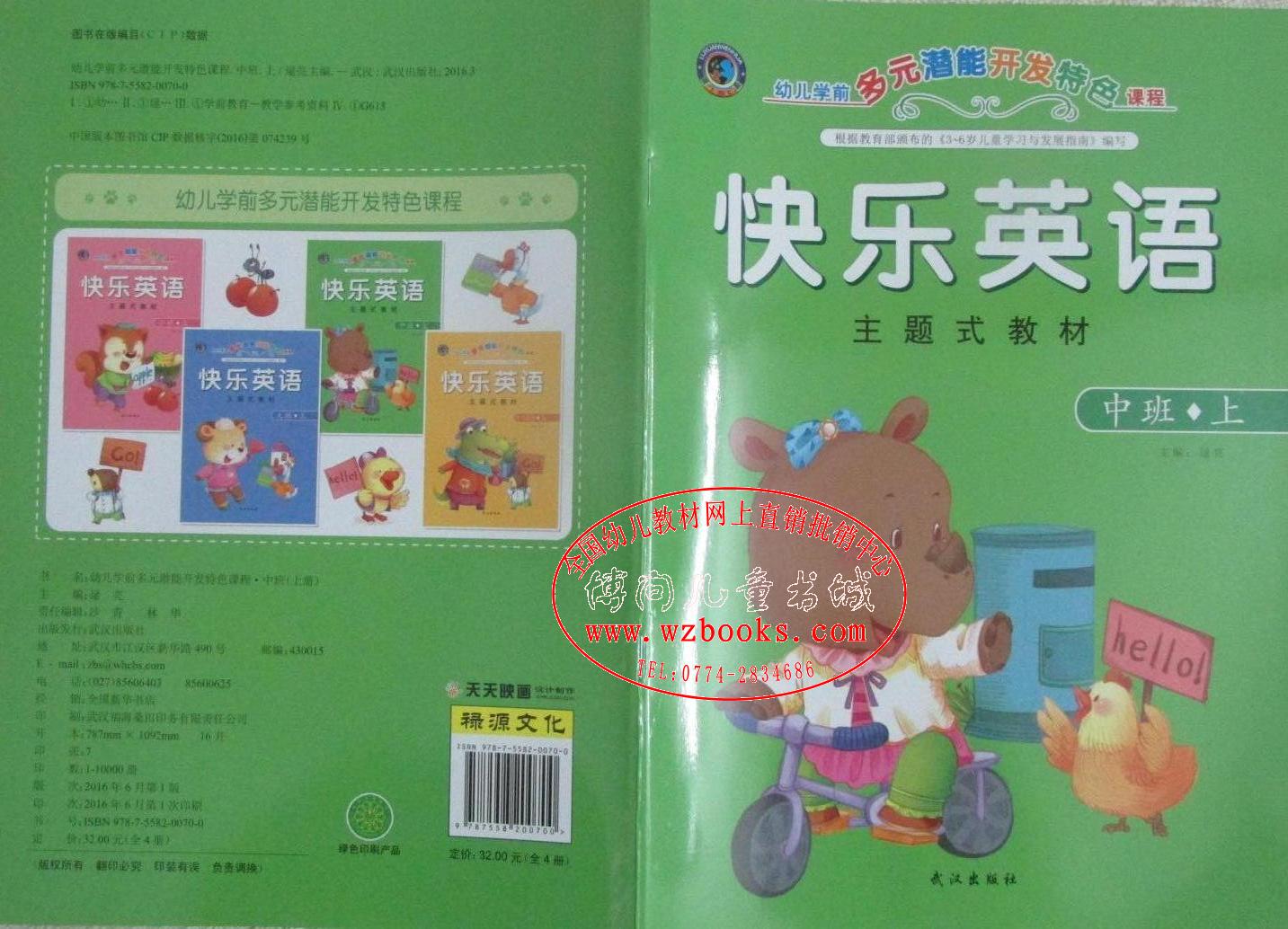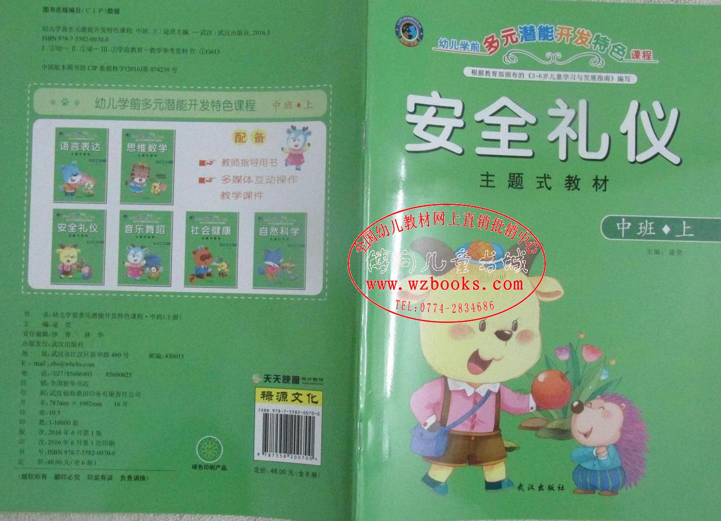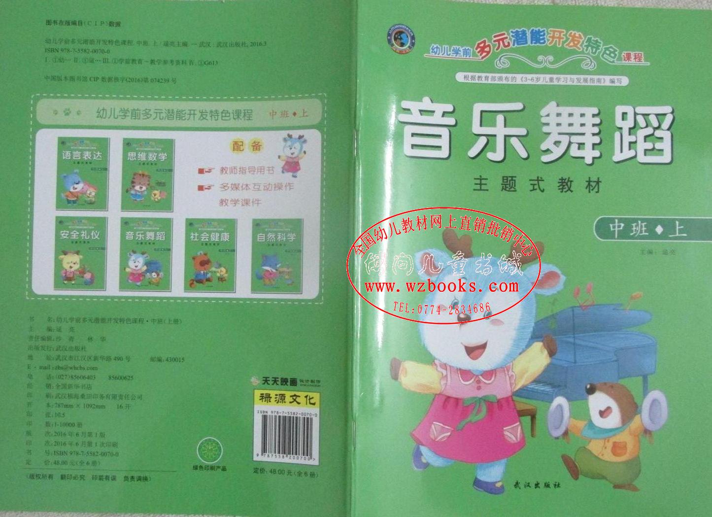 武汉出版社16开钢板纸印刷,配备多媒体互动操作教学课件,分大中小班学前班,每本定价8元(小班中班7本,大班学前班9本,另有2本拼音)