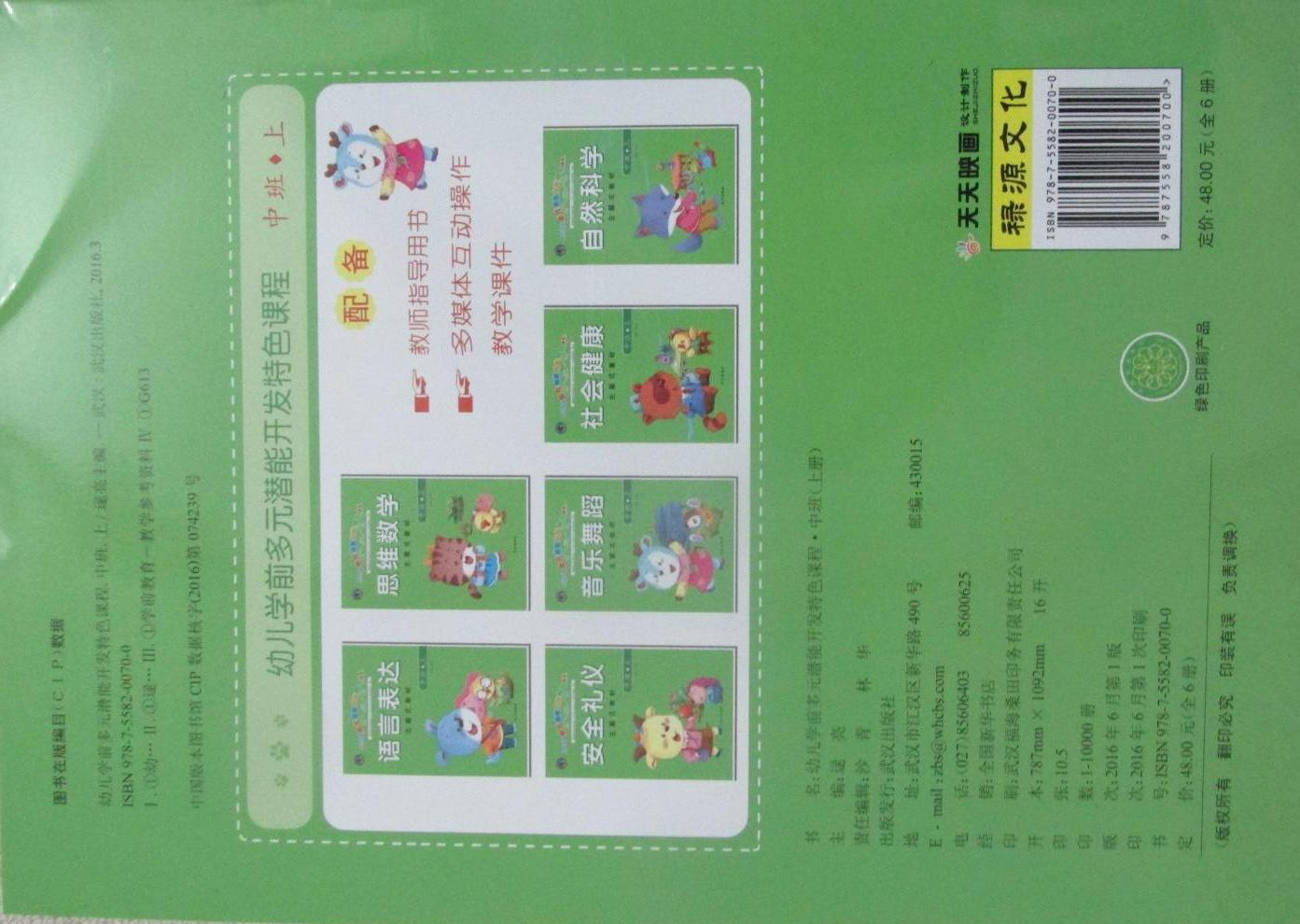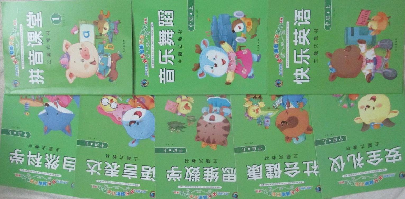 武汉出版社16开钢板纸印刷,配备多媒体互动操作教学课件,分大中小班学前班,每本定价8元(小班中班7本,大班学前班9本,另有2本拼音)