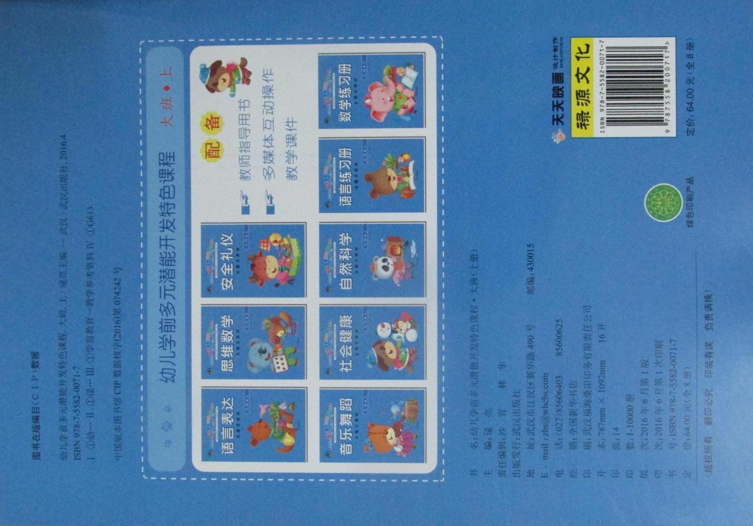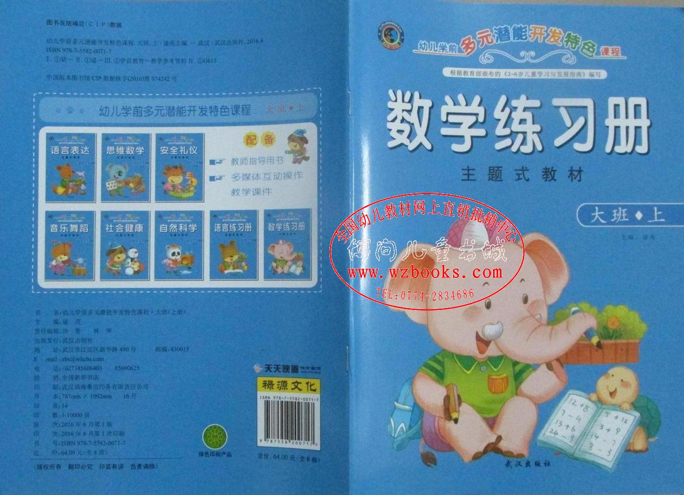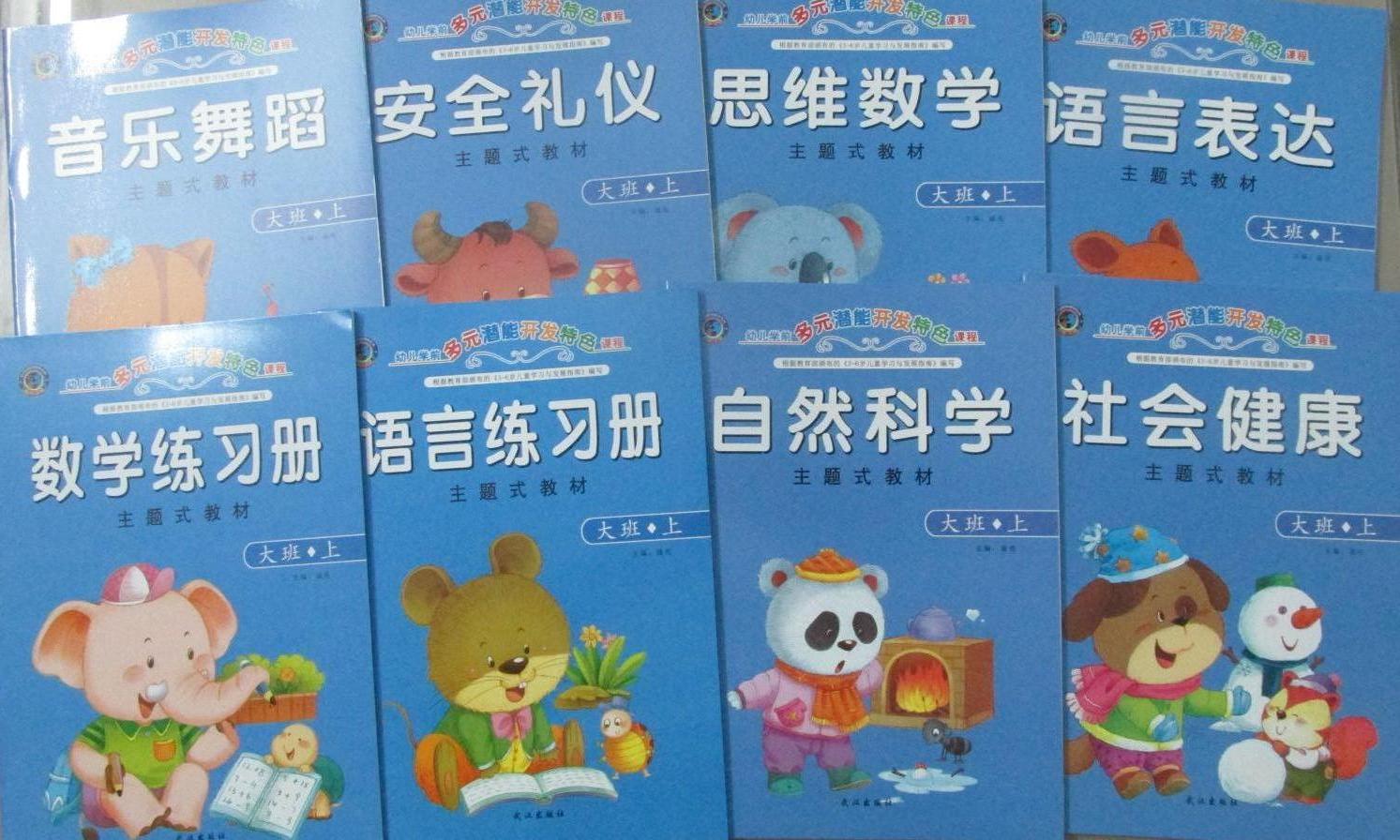 禄源文化 幼儿学前多元潜能开发特色课程 主题式幼儿园教材(含五大领域:语言表达、思维数学、安全礼仪、音乐舞蹈、社会健康、自然科学、数学练习册、语言练习册、英语、拼音、拼音练习册)分大中小班学前班,每本定价8元(小班中班7本,大班学前班9本,另有2本拼音)