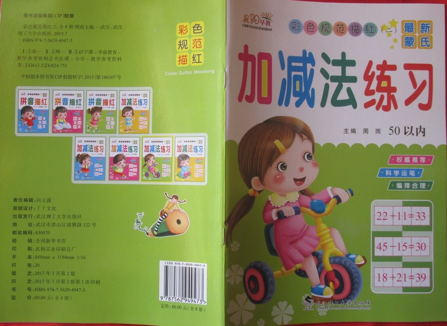 晨阳早教彩色规范描红24开共16本(数字描红0~10、1~20、1~50、1~100,加减法练习5以内、10以内、20以内、50以内、100以内,笔顺、汉字启蒙、基础、提高,拼音(该教材由于出版供货问