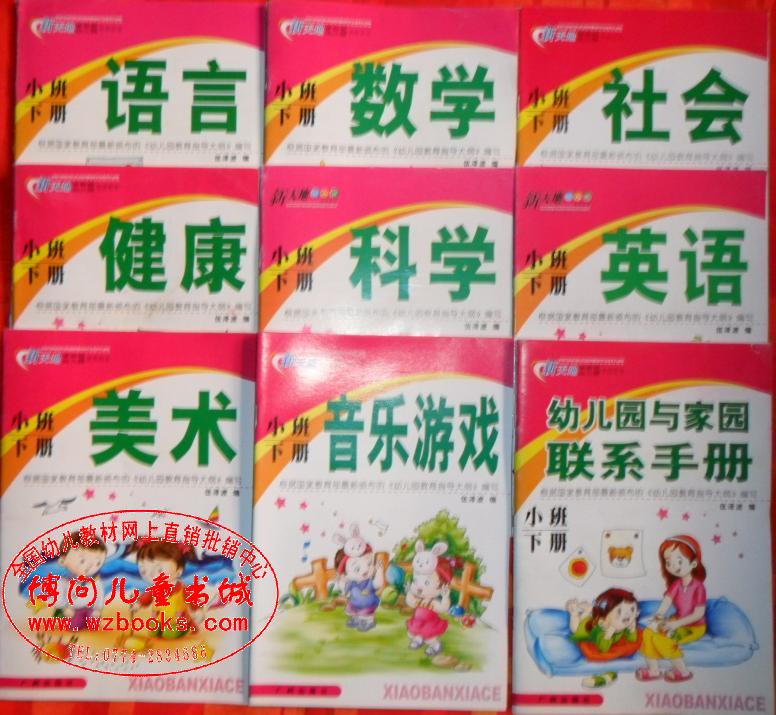 大中小班分别9册/套(英语,美术,数学,语言,音乐游戏,社会,健康,科学,幼儿园与家庭联系手册) 全套定价34.2元/套(分上下册,每册定价: 3.8 元),优惠批发价17元/套