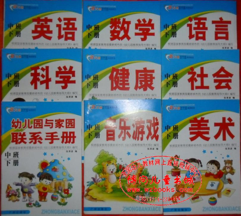 大中小班分别9册/套(英语,美术,数学,语言,音乐游戏,社会,健康,科学,幼儿园与家庭联系手册) 全套定价34.2元/套(分上下册,每册定价: 3.8 元),优惠批发价17元/套