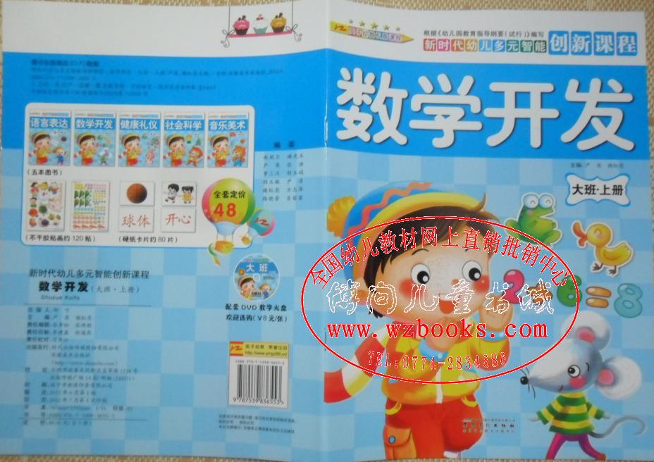 英子幼教新时代幼儿多元智能创新课程幼儿园教材课本主编:严英,谢红亮安徽美术出版社情景中想象、游戏中学习,本套教材显著特点:内容新颖、趣味性、互动性、操作性,塑封16开大包装,全书特亮铜版纸印刷。大中小班分上下册,每册套分别有5本书(附送教具:不干胶帖画及硬纸卡片)语言表达、数学开发、健康礼仪、社会科学、音乐美术
